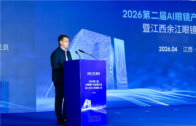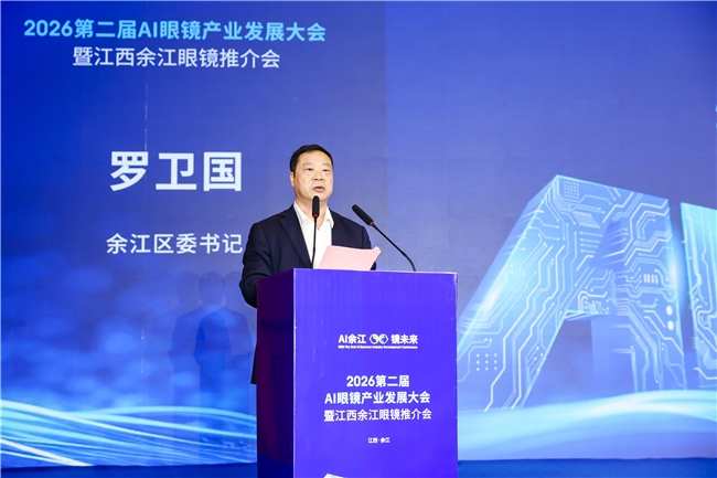 4月2日,由中国眼镜协会指导,江西余江工业园区管委会、《中国眼镜科技杂志》主办,余江区眼镜产业发展服务中心承办,鹰潭农商行、鹰潭眼镜行业协会、中童镇商会协办的“2026第二届AI眼镜产业发展大会暨江西余江眼镜推介会”在鹰潭市余江区举行。来自政府部门、行业协会、科研机构及企业代表等近300人参会。大会开幕式由余江区委书记罗卫国主持。